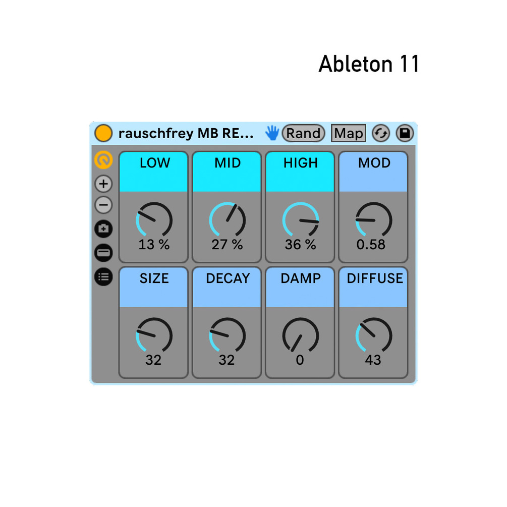 Multiband Reverb provides each of the 3 Bands with a reverb unit, aligned in its size and behavior for the respective frequency band. An overall MODulation, SIZE, DAMP, and DIFFUSE macro puts the sonic shape of the reverb into your hands.